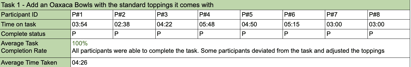 While this prompt was effective for testing a specific flow, I learned that more generalized prompts like "Order a customized bowl' can provide richer insights into how customers explore an app.